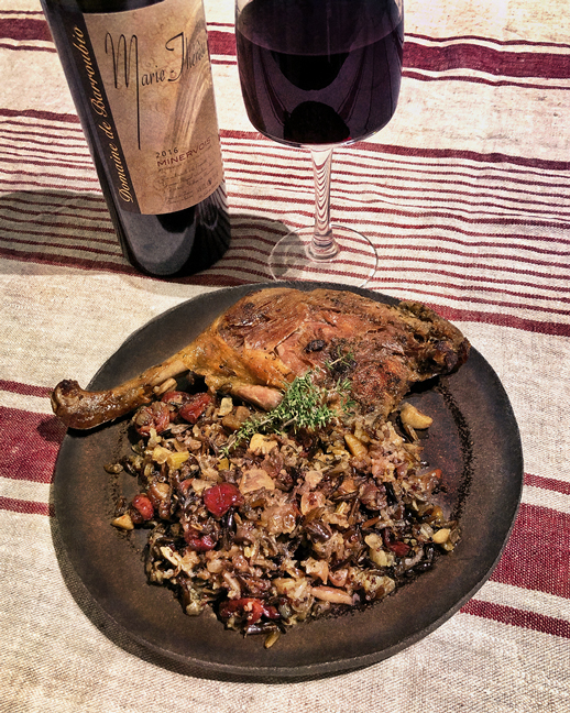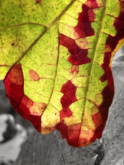 With this year’s confinement in France, I haven’t been able to stray far from home, and I’ll be enjoying my Thanksgiving feast solo (see a photo of last year’s dinner below). Throughout this message, I’m sprinkling in a few views of autumn leaves near my house. Here in my little corner of paradise, we don’t have the red maple trees of New England, nor the golden aspen of Colorado, but we do have an abundance of wine trees,* and they’ve given us a glorious show this year.