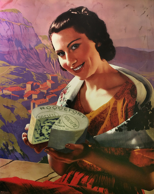 The legend is is that a young sheepherder was out in the hills one day, and while eating his lunch, he caught sight of a lovely girl in the distance. He tucked his partially-eaten lunch of bread and cheese into the freshness of a nearby cave, and went off to chase the girl. Some days later he returned, dejected at not finding the girl, and he discovered that the cheese and bread had molded over. Besides being sad about missing out on love, he was also hungry, so he bit into the cheese and had the eureka moment that led to today’s Roquefort cheese.