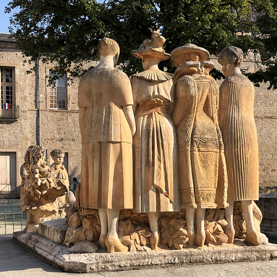 As the sun began to sink and the light became more golden, we made our final stop of the day at the Monument aux Morts, the most unusual war memorial I’ve seen in France. The monument was installed in 1930, and the sculptor was Paul Dardé.