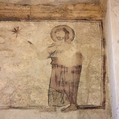 I was feeling grateful for the people who saw fit to make these repairs and save this little gem of a church. Along with the wall paintings, there are a few fine column capitals, and some further painting that is somewhat newer (perhaps from a 15th-century reconstruction). I know I’ve said rather a lot about one little country church, but it was a delightful surprise that we found at the end of a pretty day, through the help of a gracious and generous local who clearly loves her church.