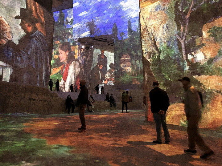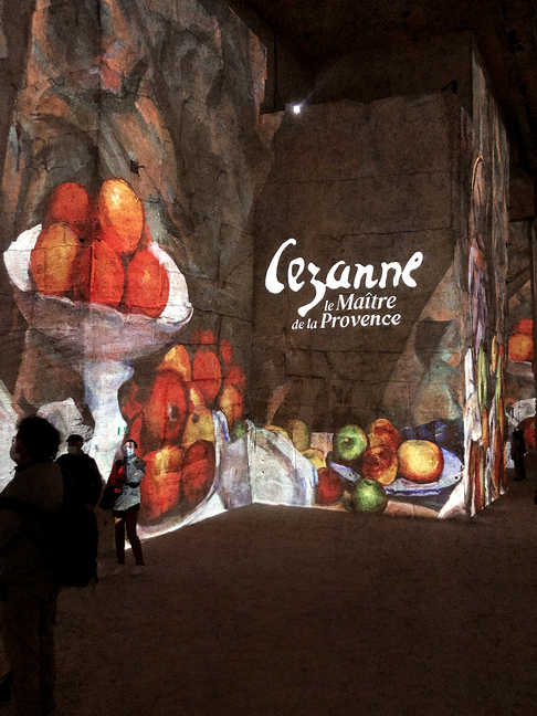 The Carrières des Lumières (Quarries of Light) is a 2,000-year-old limestone quarry in the rugged Alpilles hills near Saint-Rémy-de-Provence. The quarry closed in 1935; Jean Cocteau filmed “Testament of Orpheus” here in 1960, and in 1975 a man named Albert Plécy had the clever idea to use the quarry as a giant screen to show artworks. A destination was born. Each year, two artists are presented, often following a theme, accompanied beautifully by a splendid and varied musical soundtrack.