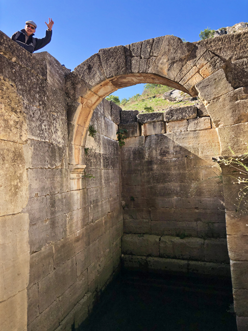 Claude waves from above the sacred spring of Livius at Glanum. Celts settled this region because of the healing waters.