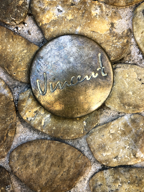 Near Glanum is Saint-Paul-de-Mausole, an 11th-century monastery that has served as a psychiatric health institution for over 200 years. After he damaged his left ear, Vincent Van Gogh voluntarily checked himself in to the hospital. He remained there for just over a year, during which he produced around 140 paintings and 100 drawings. Saint-Paul continues in this function to this day, and I later learned something I wish I’d known when we visited: a portion of proceeds from the gift shop go to purchasing art supplies for residents of the hospital. The photograph shows Van Gogh’s signature on one of the brass markers seen throughout the region.