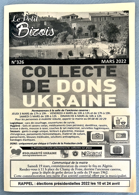 Driving around our region over the past week, I’ve seen a lot of signs posted by mayors’ offices and other organizations, asking people to contribute either goods or money to aid the refugees. Here in our village, it was an enormous effort; when I stopped by to drop off a couple of checks, the space was piled high with boxes containing winter clothing, medical supplies, and personal hygiene products.