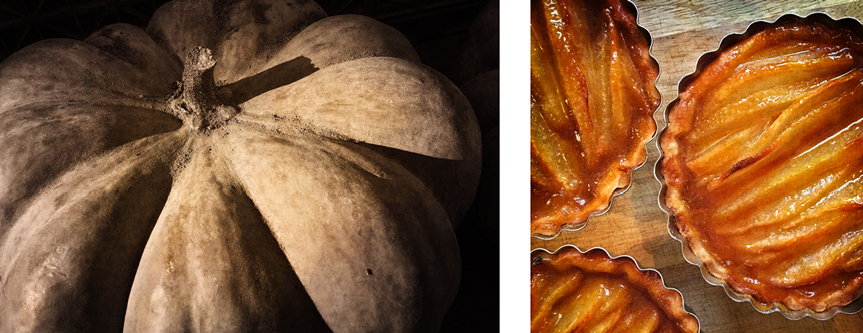 Previous Image Next Image 44 Left: Fabulous texture and shape on a market squash. Right: The caramel-pear tarts I made for Thanksgiving dessert.